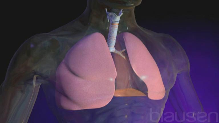 在正常呼吸过程中,空气通过鼻子,向下经气管进入越来越小的气道(称为支气管)。支气管可分支为无数细支气管,最终分支为细小的葡萄状囊簇,这些囊薄而脆,被称为肺泡。