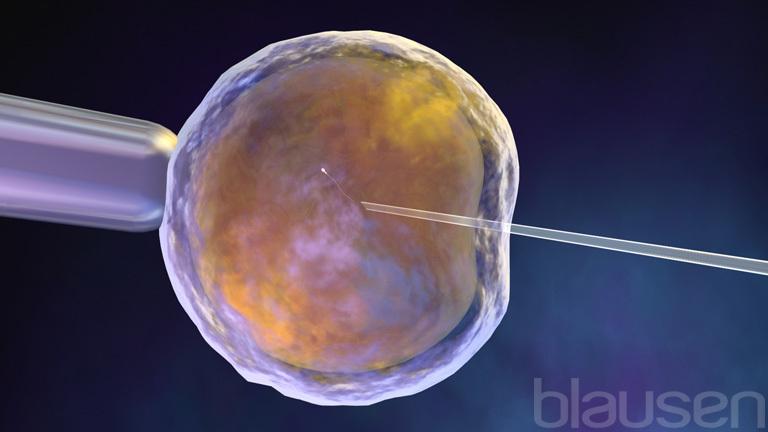 在经过精子洗涤的过程后,将精子与获取的卵子混合。方法是用另一根针,将精子注射到卵子的细胞核内。或者,可以将精子与卵子一同放在特制实验室培养皿中。受精发生的一个迹象是,卵子开始裂开或分裂成多个细胞。胚胎需要在受精后 72 小时放入子宫。