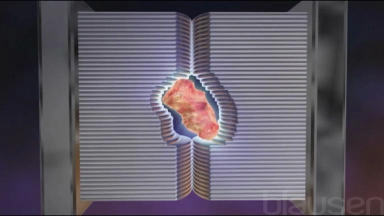 调强放射治疗或IMRT是外线束放射疗法中可用的最先进的治疗方法之一。最初对患处进行CT扫描,以建立肿瘤和周围健康组织的确切轮廓,从而确定放射剂量。根据此数据,通过计算机控制的多叶准直仪将辐射束调制为不同的强度水平。该装置的“叶片”周期性进出,使辐射束轮廓符合肿瘤形状。辐射束从不同角度进入人体以最大化肿瘤照射剂量。IMRT技术通过使健康组织仅暴露小剂量辐射,而肿瘤则接受更大,可能更有效的剂量,从而有助于保护邻近的健康组织。辐射通量在整个区域内都在变化,最终效果是,IMRT在肿瘤周围的辐射形状比常规辐射更精确。