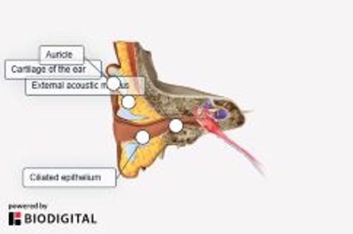 产生耵聍的腺体仅位于外侧外耳道中,并且仅存在于带毛的皮肤中。耳朵深处的耵聍通常被患者使用棉签或耳塞推到那里。